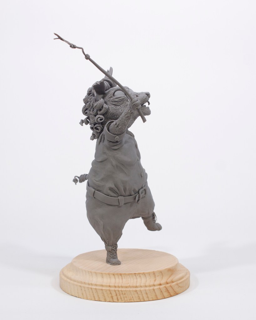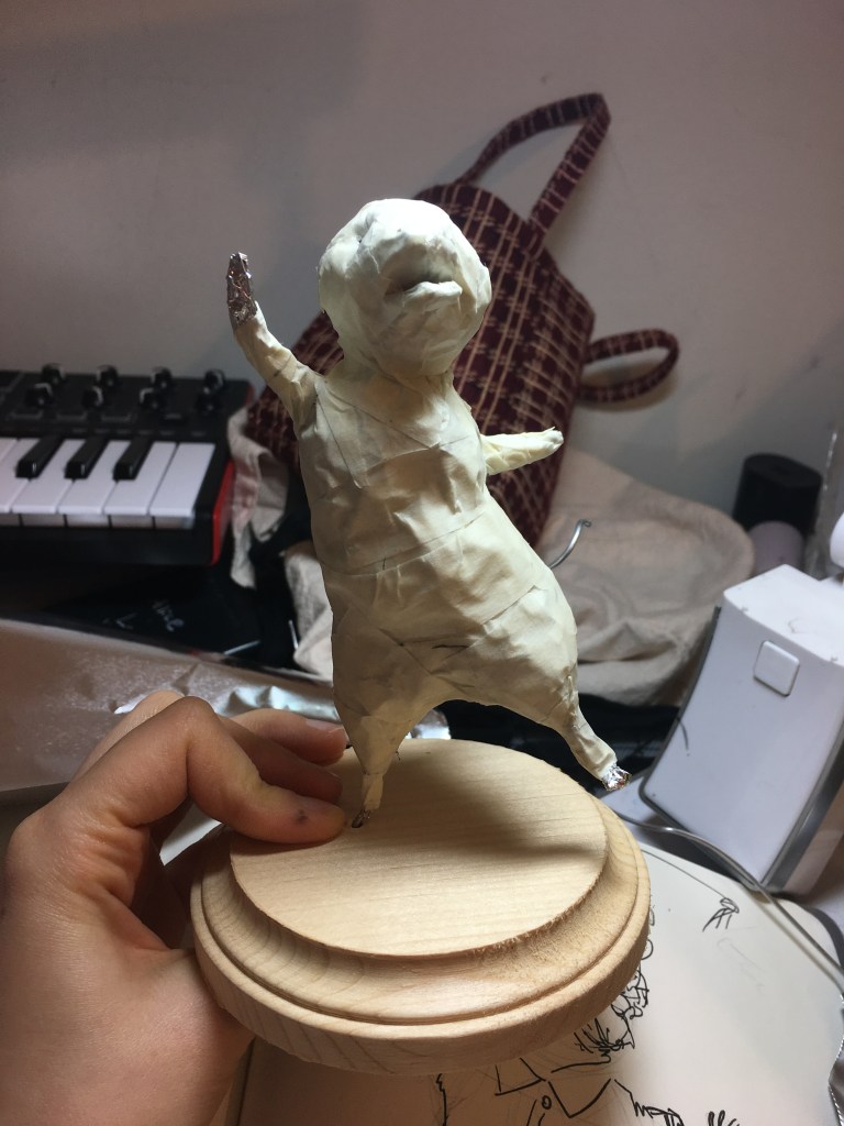 The sculpture was created with firm sculpey clay. Check down below for process photos and sketches!