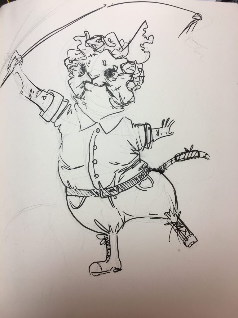 This character design is based off of Mabel Stark, a famous female tiger trainer. She had an extremely interesting life, and was very devoted to her tigers. I wanted to portray her as a mouse to emphasize the power dynamic of her career, as well as in her old age to depict her history with big cats. Her pose is commanding yet delicate, referencing her past career as a dancer.